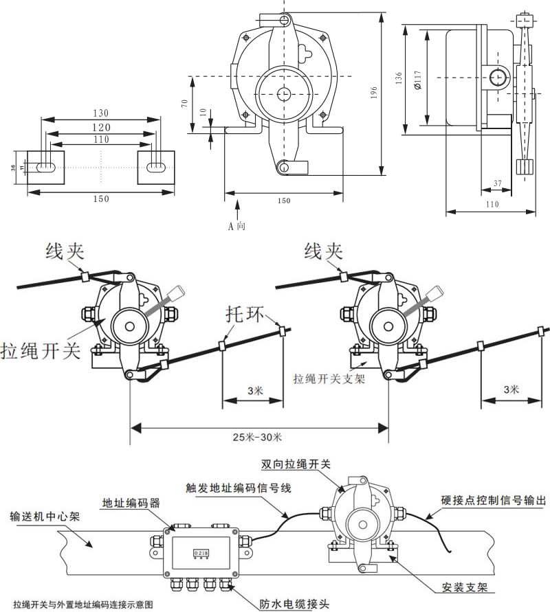 本机外壳采用304不锈钢材料,具有超强的防腐蚀,防锈,防水,功能,适用于恶劣,潮湿环境永不生锈,用于胶带运输机发生事故时紧急停机避免事故扩大是带式输送机不可缺少的重要安全保护开关,可配置地址编码器实现地址编码通信功能。